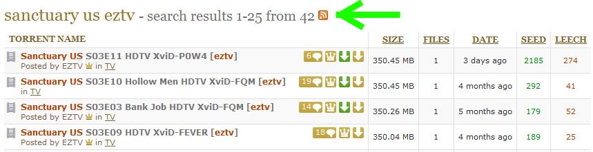 In this step, we are going to find/create a “filtered” RSS feed (in plain english: a list of recent episodes of our desired TV Show for download. The list will automatically update itself on a regular basis) to plug in to uTorrent.