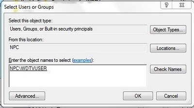 H. In the white box type in the name of the new user we created in STEP 2. Click the “Check Names” Button. It should underline whatever you typed in and perhaps add or slightly modify it in some way. If it does this then you typed it in correctly.