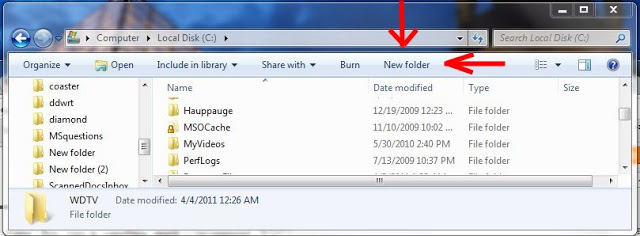 A. Go to Start –> Computer –> Local Disk (C:) –> New Folder –> Name the folder “WDTV”