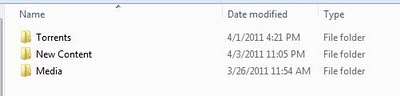 B. Go Inside the folder you just created and create these new folders (without the quotes): “Torrents,” “New Content,” & “Media.” It should look like the picture below when you are finished…