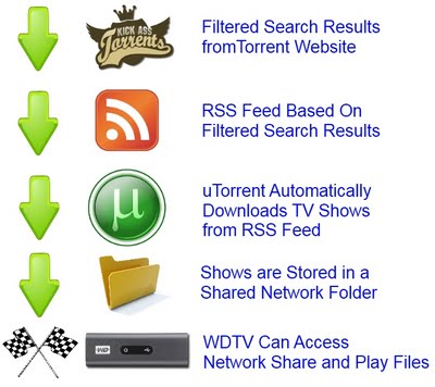 This is it! The final step! This is where the magic happens. In this step we are going to setup uTorrent to automatically download our favorite TV Shows to our shared folder. Hence, your WDTV will be updated with fresh content as it becomes available! You just navigate to the shared folder on your WDTV and start watching!