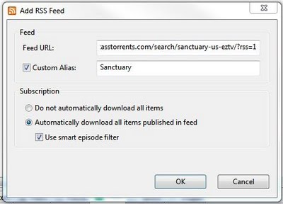 E. Click the “OK” button. You are DONE! You can continue adding other shows using the search and filter method above and then using the “add rss feed” button in uTorrent to add another feed.